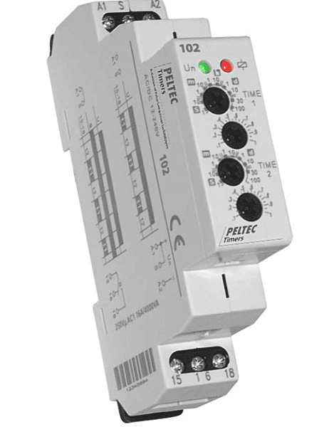 Dual Time Adjust Repeat Cycle Timer · 2 Timing modes: 1. On Time first (On/Off Delay), 2. Off Time first (Off/On Delay)